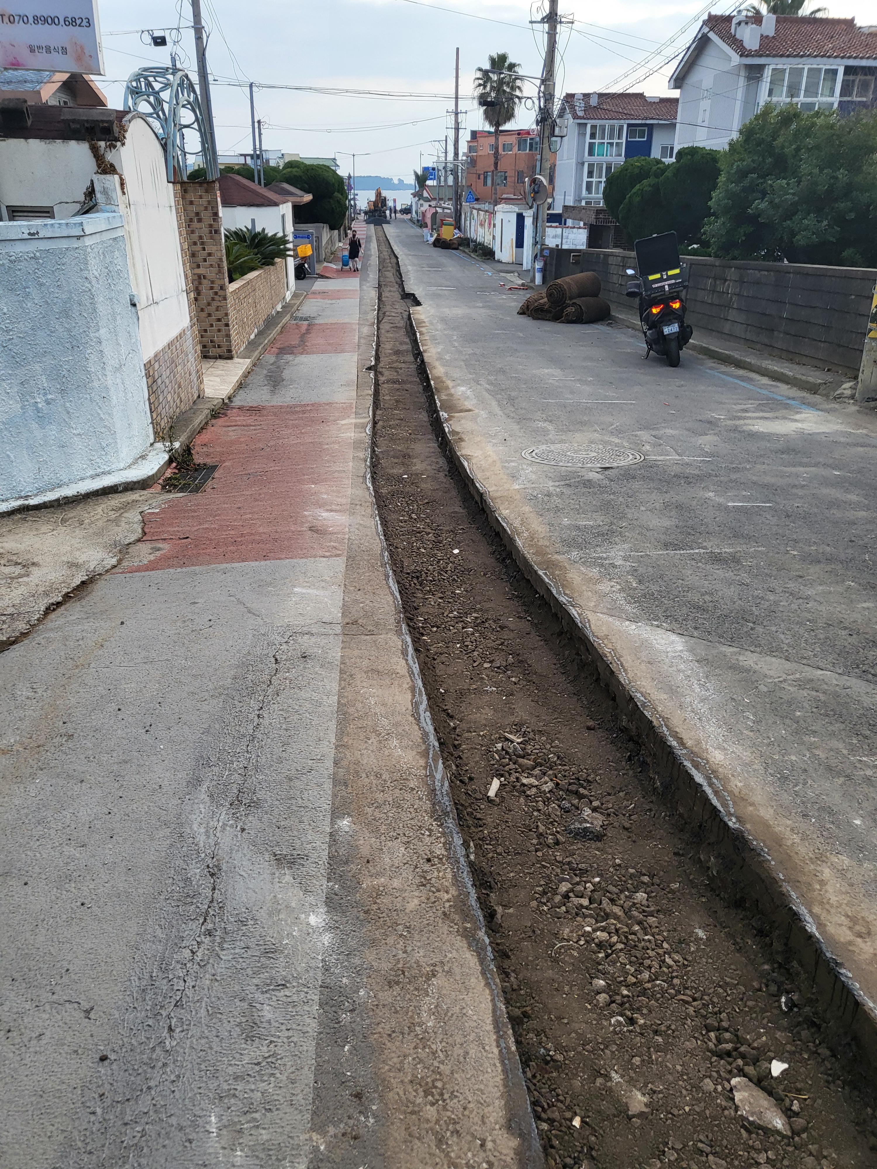๊ฑท๋ค๋ณด๋ ๋๋ก๊ฐ ๊ณต์ฌ ์ค์ด๋ผ