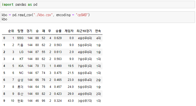 # kbo csv ํ์ผ ์ฝ์ด์ค๊ธฐ