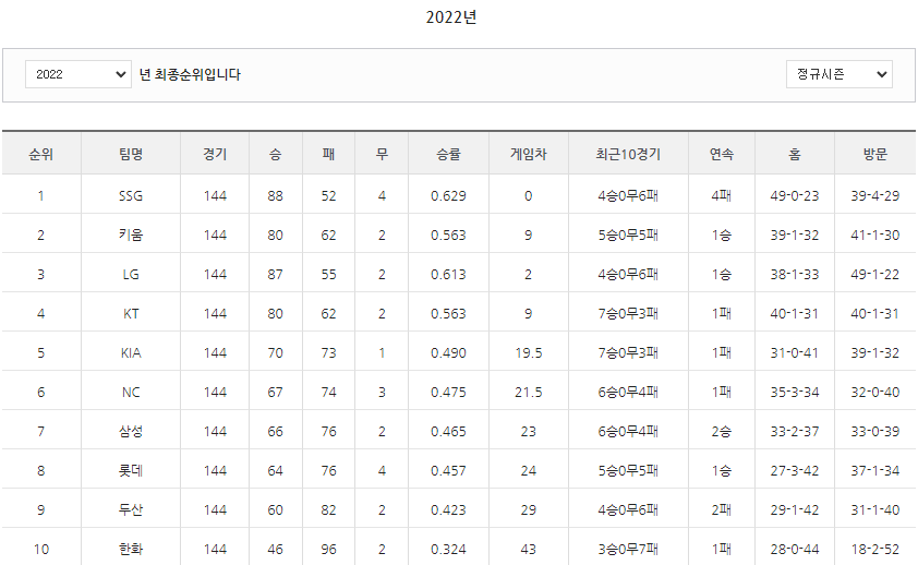 kbo = pd.read_csv("./kbo.csv", encoding = "cp949")